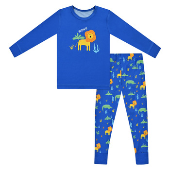 Conjuntos de pijama para niños nuevos de estilo ajustado al por mayor para niños, ropa de casa con patrón de animales, manga larga, tela térmica de verano Spandex